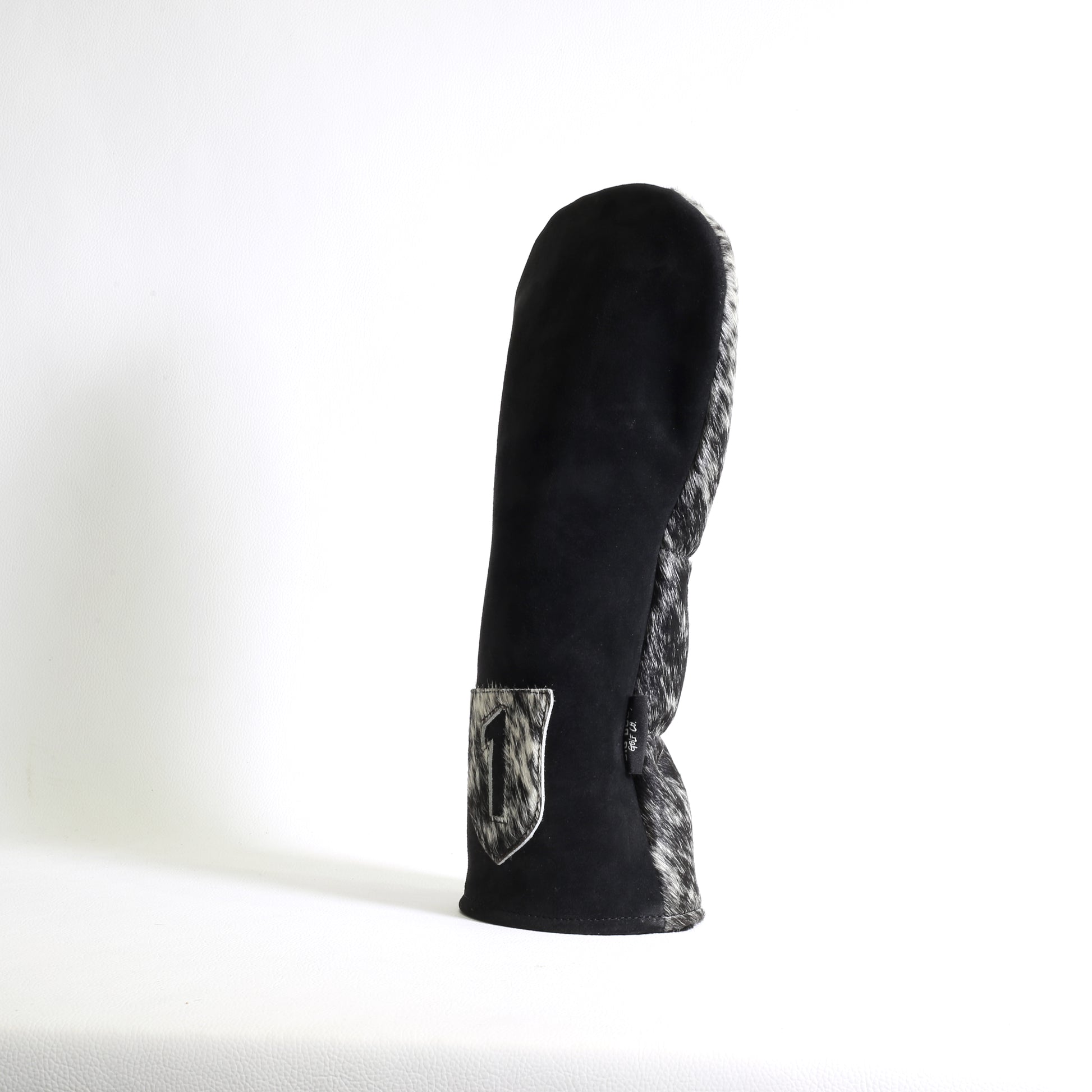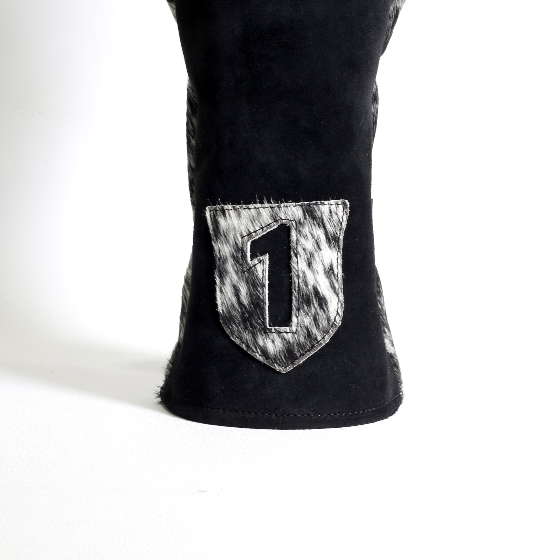 Outer – Premium, black suede leather front, featuring Salt & Pepper hair on hide leather rear